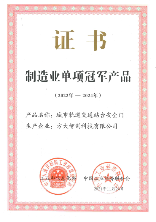 Fangda Innotech Co., Ltd., founded in 2003, is a wholly-owned subsidiary of Fangda Group. It is among the first batch of national high-tech enterprises in China involved in the R&D, design, manufacture, installation, and service of rail transit screen door systems. It was the principal contributor to the drafting of the first industry standard and national product standard for platform screen door (PSD) systems in China. The company is also a world-renowned manufacturer and service provider of rail transit screen door systems.