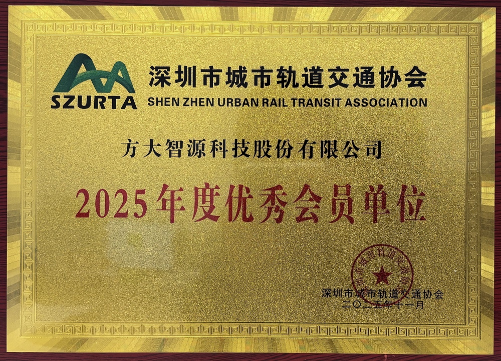 2025年11月25日,值深圳市城市軌道交通協(xié)會(huì )成立十周年之際,方大智源作為副會(huì )長(cháng)單位參加“深圳市城市軌道交通協(xié)會(huì )第四屆第一次會(huì )員大會(huì )暨2025軌道交通高質(zhì)量發(fā)展創(chuàng )新論壇”,榮膺2025年度優(yōu)秀會(huì )員單位,經(jīng)選舉蟬聯(lián)協(xié)會(huì )副會(huì )長(cháng)單位。
